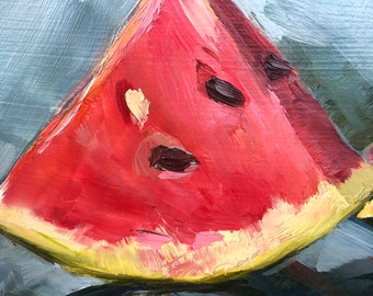 Watermelon Original Oil Painting Fruit Still Life Kitchen Etsy Uk